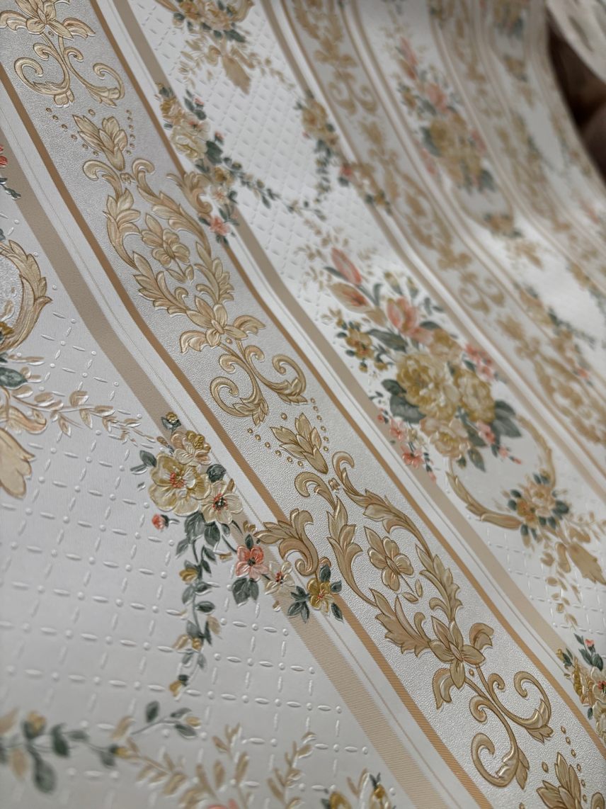 De verfijnde details en zachte kleurstelling geven de ruimte een rustige, maar rijke sfeer. Dankzij het klassieke patroon is dit behang ideaal om een chique accentmuur te creëren of een volledige ruimte een elegante make-over te geven.