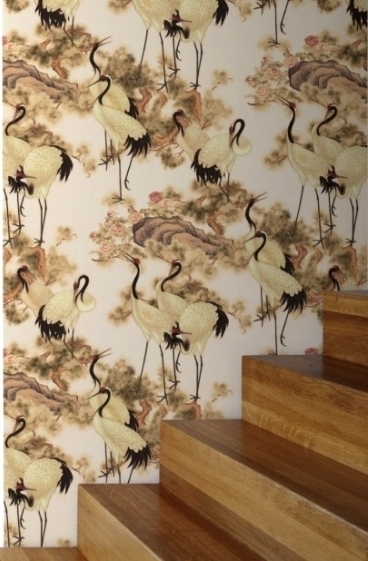 Japans kraanvogel behang met bloemen en natuurmotief