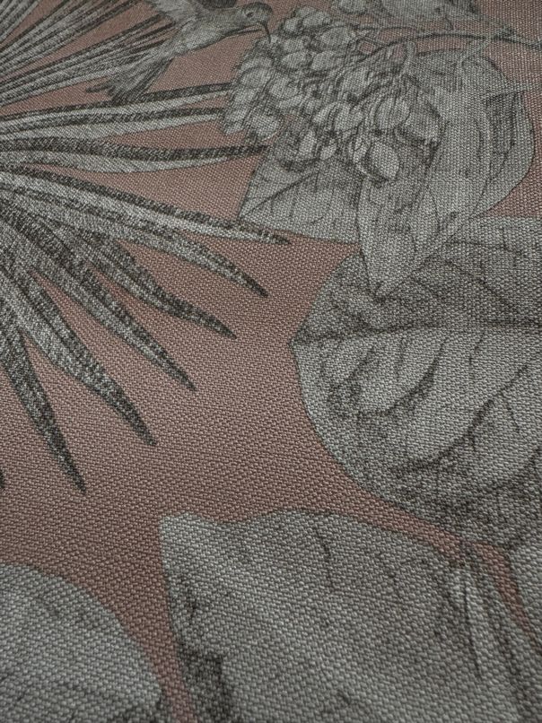 Dit stijlvolle vliesbehang van BN Wallcoverings (artikelnummer 22185) heeft een elegant jungle dessin met bladeren en vogels. De zachte roze achtergrond zorgt voor een warme en rustige uitstraling met een moderne twist.